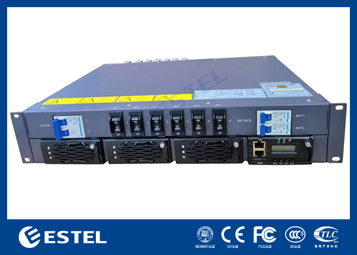 ET4805K-2U sub-rack voeding met een compact ontwerp van 2U hoogte kan voldoen aan de kritische toepassingsbehoeften van glasvezel- en microgolftransmissie, toegangsapparatuur en switches. Het systeem heeft een maximaal vermogen van 90A, met AC/batterij/belasting MCB's. De kabels zijn aan de achterkant toegankelijk.